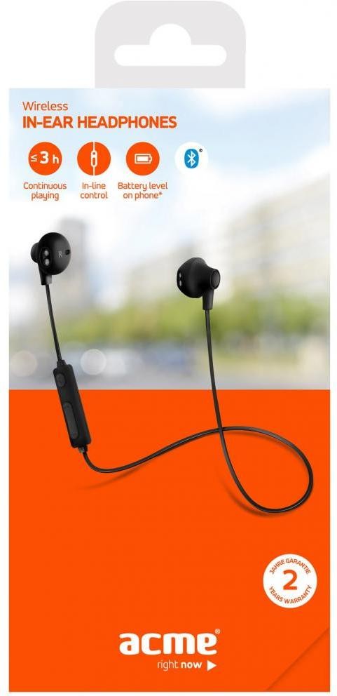 Представляємо бездротові навушники ACME Bluetooh in-ear. По-перше, вони оснащені інтерфейсом Bluetooth, так що без проблем підключаються до інших пристроїв, що підтримують дану технологію, для зручного прослуховування музики. Крім того, вони забезпечені інтегрованим мікрофоном, тому можуть використовуватися як пристрій «вільні руки», зручно розташовані кнопки дозволяють без зусиль регулювати музику. Час програвання навушників – до 3 годин, звук чистий і якісний.