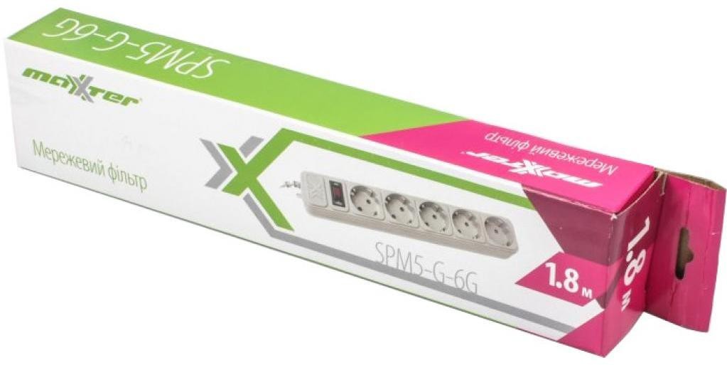 Мережевий фільтр живлення Maxxter SPM5-G-6G серый 1,8 м кабель, 5 розеток (SPM5-G-6G)
