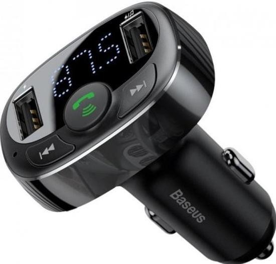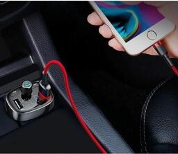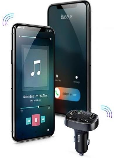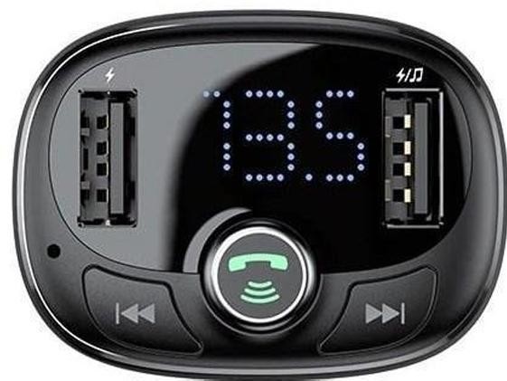Baseus T typed Bluetooth MP3 з'єднує функції FM-трансмітера і автомобільного зарядного пристрою. Він забезпечує бездротову передачу сигналу через радіочастоту на колонки автомобіля. З його допомогою ви зможете відтворювати музику зі смартфона або USB-накопичувача на акустичну систему, встановлену в автомобілі. Два порти USB дозволяють одночасно заряджати до двох пристроїв.