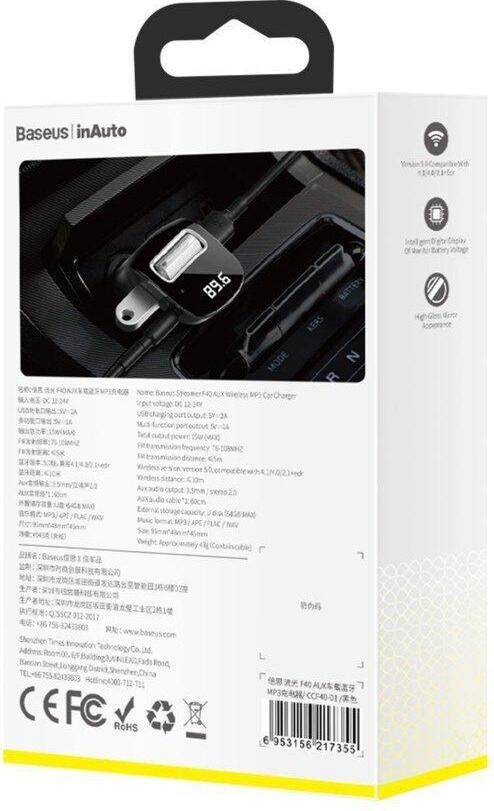 FM модулятор Baseus Streamer F40 AUX wireless MP3 Black (CCF40-01)