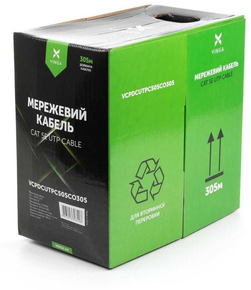 Кабель мережевий Vinga UTP 305м cat.5e Copper 4 пары 0.5мм мідь (VCPDCUTPC505CO305)