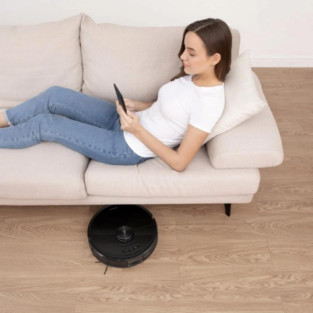 Технологія Smart Mopping відповідає за вологу протирання статі. Ви можете регулювати кількість води, яка подається на серветку, встановивши необхідний рівень прямо на контейнері. У цьому режимі можна налаштувати віртуальні кордону: вкажіть в мобільному додатку, що під час вологого протирання підлоги натирача не можна заїжджати на килими. Таким чином вони будуть сухими, а все гладкі поверхні - чисті, без розлучень і бруду. Миючий робот пилосос для вологого прибирання використовує серветки з мікрофібри. Вони добре видаляють розлучення і не псують поверхню.