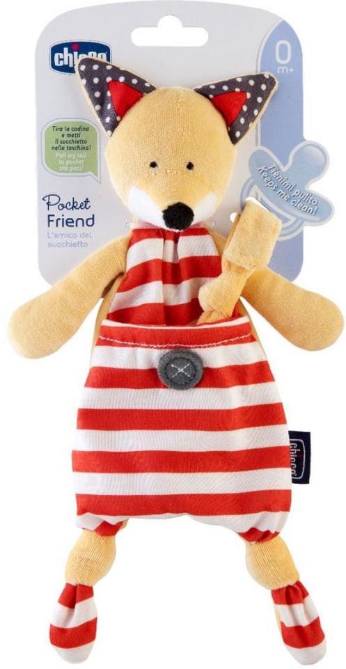 М'яка іграшка Chicco Fox з кліпсою-тримачем і кишенькою для пустушки.
