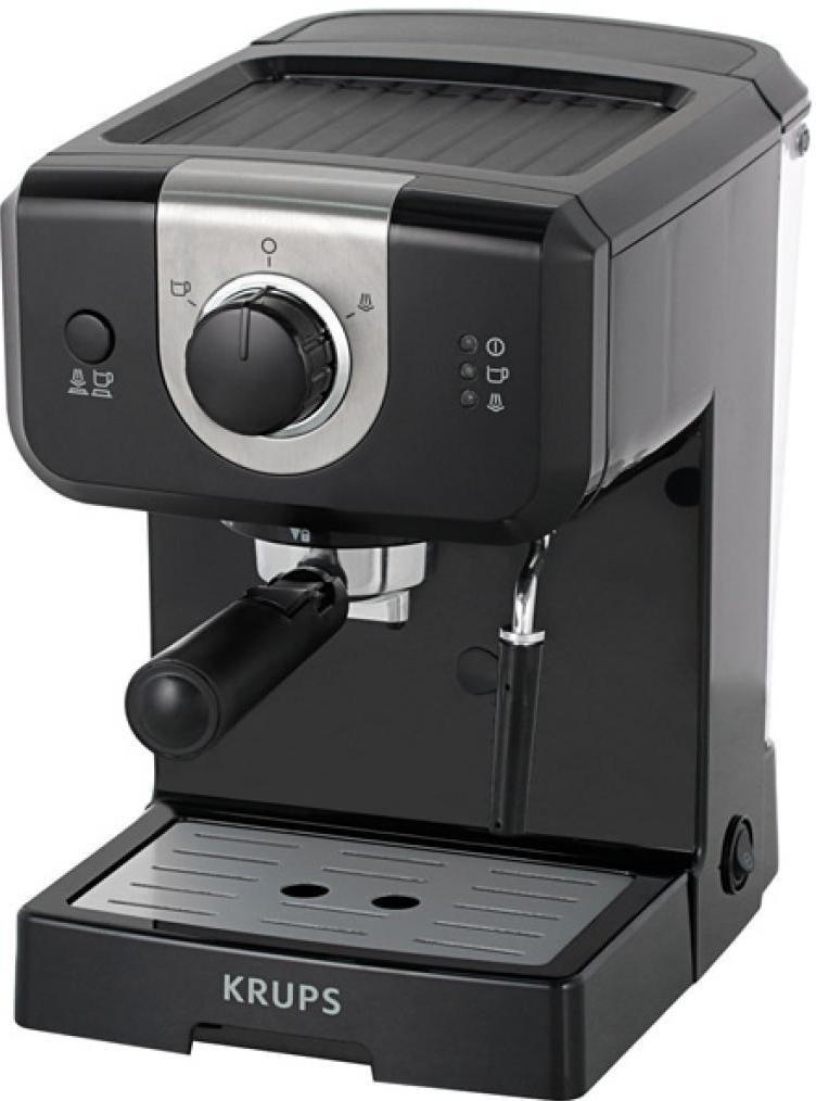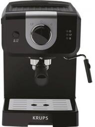 Рожкова кавоварка еспресо Krups OPIO XP320830 виконана в настільному виконанні і готує напої з меленої кави. У ній встановлений надійний насос італійського виробництва, що створює тиск до 15 бар, щоб отримати справжній смак кави. Особливістю моделі є застосований удосконалений алюмінієвий бойлер швидкого нагріву. Крім цього, є можливість підігріву чашок. Справжній кремовий капучино з повітряною пінкою виходить завдяки зручному вбудованому паровому соплу. Спеціальні фільтри дають можливість одночасного приготування двох порцій еспресо. Прилад оснащений резервуаром для води ємністю 1,5 літра, який легко знімати та зручно наповнювати. Рожкова кавоварка еспресо Krups OPIO XP320830 комплектується темпером для щільного втрамбування кави та мірною ложкою, щоб точно дозувати його кількість. Зберігаються ці аксесуари у спеціальному вбудованому відсіку.