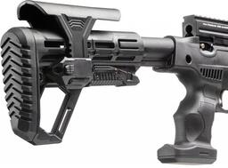 Корпус виконаний з алюмінію і полімеру, має ергономічну пістолетну рукоятку. Приклад телескопічний і має регульований підщічник.