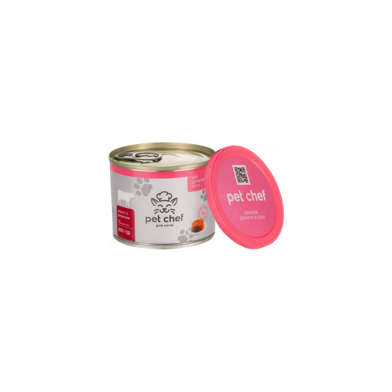 Pet Chef — ексклюзивний апетитний ситний продукт для кішок за новою рецептурою в зручних банках, захищених кришкою. Консерви Pet Chef виготовляються з українського м'яса та субпродуктів.