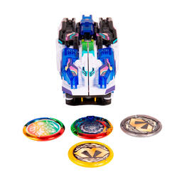 У наборі: машинка-трансформер, 4 диски, наліпка, картка.