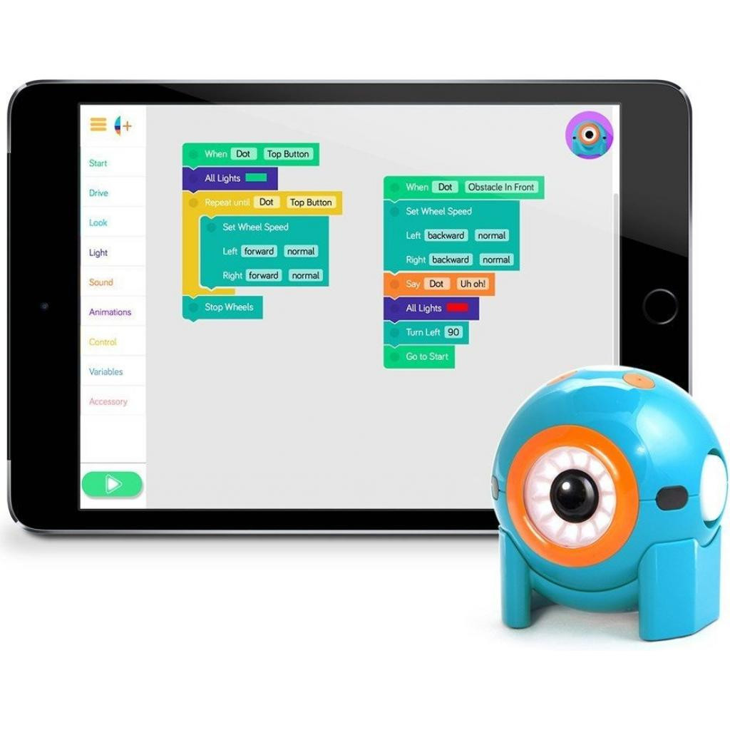 Робот Dots від Dash & Dots – маленький мозок, який перетворить програмування в захоплюючу гру. Він поставляється з декількома захоплюючими іграми «на борту» – Magic Dot Ball, Dot of Music і Light Sword – а з допомогою спеціальних програм можна створювати власні ігри та розважальні програми. Читати товсті мануали не потрібно – навчання побудоване на простих цікаві задачки. Dots дає дітям можливість створювати свої власні ігри і гаджети, він підходить для використання у вікових групах від 5 років. Додаток Wonder – легкий спосіб перетворити робота в будь гаджет, який дитина тільки може уявити. Мова програмування Dots розроблений спеціально для дітей і заснований на картинках – розібратися в кодинге малюк зможе ще до того, як навчиться читати!