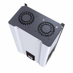 Встановлювати і експлуатувати стабілізатор Ампер рекомендується в сухих і опалювальних приміщеннях. Настінну установку рекомендується проводити у вертикальному положенні (вентиляторами вгору), залишивши зверху і знизу 10-15см для охолодження. Підключення здійснюється до існуючої проводці через клемник.