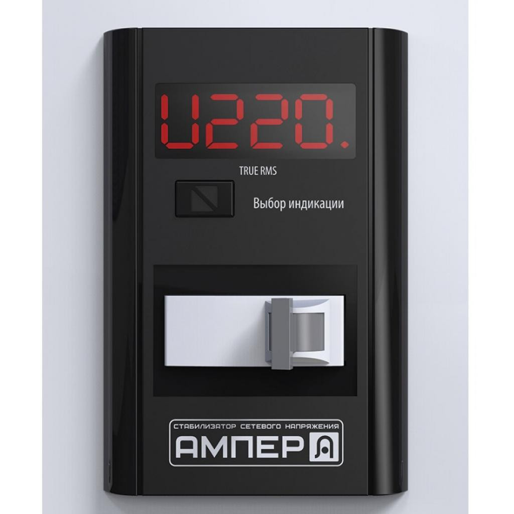 Однофазний стабілізатор напруги АМПЕР-Т У 16-1 / 80 v2.0 (точний) призначений для роботи в електричних мережах з коливаннями напруги від 145 до 275В. У цьому діапазоні апарат гарантовано видає на виході напругу в рамках 220 ± 2,7%, що забезпечується за рахунок використання 16 ступенів стабілізації.