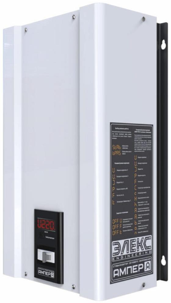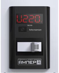 Однофазний стабілізатор напруги «Ампер 9» призначений для роботи в електричних мережах з коливаннями напруги від 160 до 260В. У цьому діапазоні апарат гарантовано видає на виході напругу в рамках 220 ± 4,5%, що забезпечується за рахунок використання 9 ступенів стабілізації.