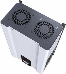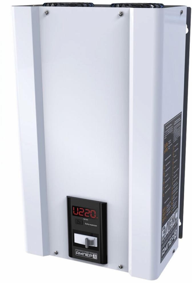 Встановлювати і експлуатувати стабілізатор Ампер рекомендується в сухих і опалювальних приміщеннях. Настінну установку рекомендується проводити у вертикальному положенні (вентиляторами вгору), залишивши зверху і знизу 10-15см для охолодження. Підключення здійснюється до існуючої проводці через клемник.