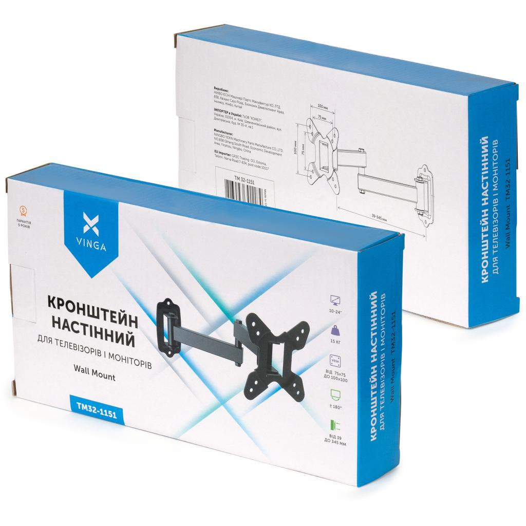 За допомогою настінного кронштейна Vinga ви можете розташувати ЖК, плазмову і ультратонку LED панель практично в будь-якій частині кімнати. Він може вирішити проблему з розміщенням екрану в тому випадку, коли неможливо або небажано використовувати підставку або шафа.