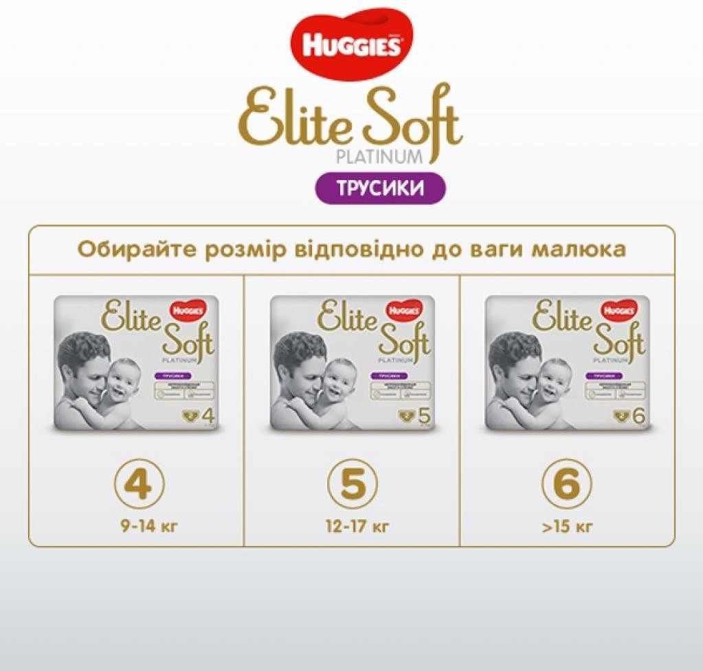 Huggies Elite Soft розробив абсолютно нову лінійку ультрам'яких й ультратонких трусиків-підгузків Platinum, які покликані ніжно обіймати шкіру вашого малюка так, наче це робите ви самі.
