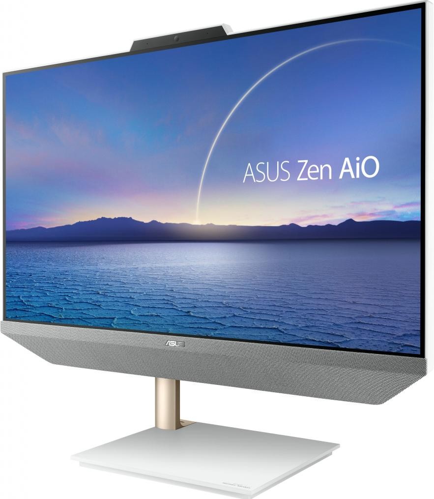 ASUS Zen AiO 24 — це красивий і функціональний комп'ютер, виготовлений за принципом «все в одному». Висока продуктивність поєднується в ньому зі стильним дизайном з оригінальними деталями, як-от зміщена від центру металева підставка та покриті тканиною динаміки, сертифіковані компанією Harman/Kardon. Моноблок обладнується тонкорамковим дисплеєм NanoEdge з діагоналлю 23.8".