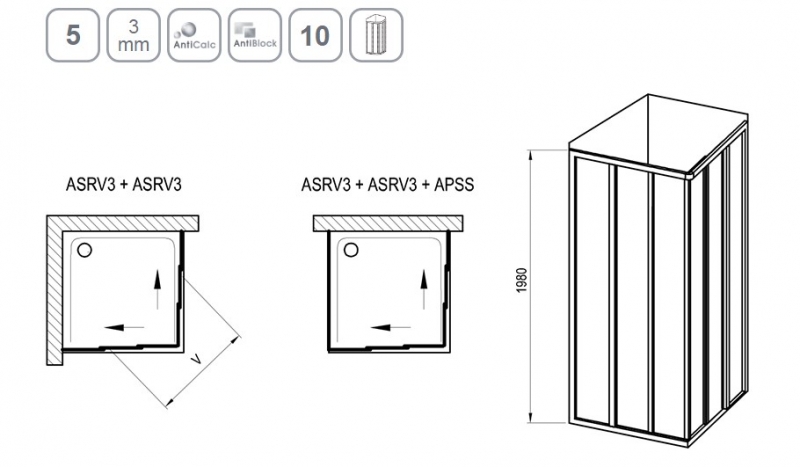 Душова кабіна RAVAK Supernova ASRV3+ASRV3 75x75 (White - Pearl)