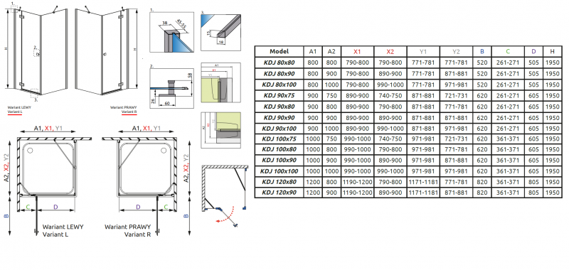 Душова кабіна Almatea KDJ 32144-01-12N L/R - 120x90 (Хром - Інтімато)
