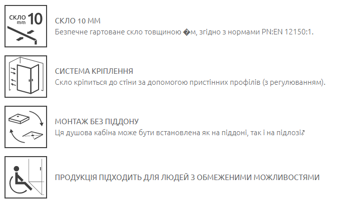 - Товщина скла: 10 (мм.)