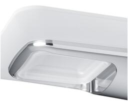 Немаленькой популярностью сегодня пользуются аксессуары, изготовленные из нескольких материалов, – к примеру, выигрышно смотрится хромированный держатель, на который крепится стакан из матового стекла.