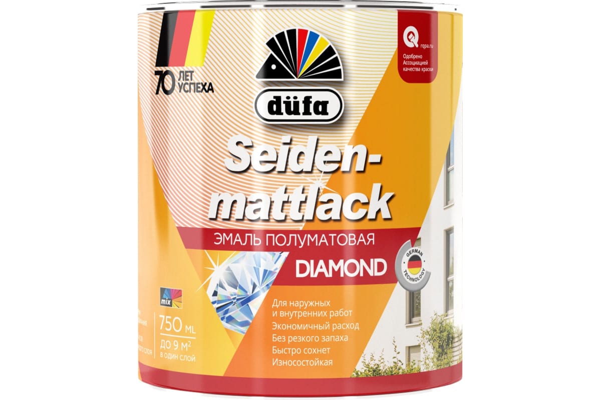 Эмаль Dufa SEIDENMATTLACK полуматовая, белая 0,75 л Н0000001780 предназначена для окрашивания загрунтованных деревянных и металлических поверхностей внутри и снаружи помещений (оконные рамы, двери, мебель, решетка, гаражные ворота, трубопровод, цоколь).