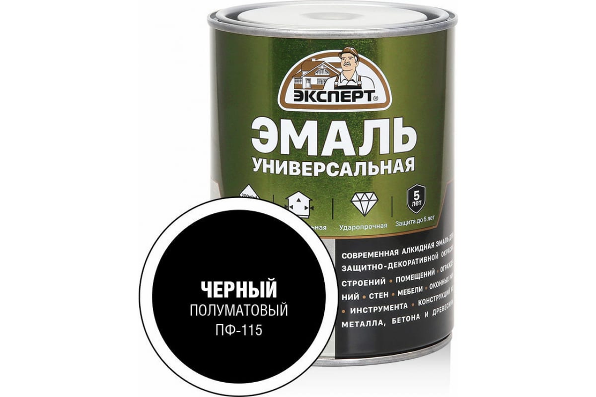 Эмаль универсальная алкидная полуматовая ЭКСПЕРТ черная 0,8 кг 30488 - универсальная алкидная эмаль применяется для защитно-декоративного окрашивания металлических, кирпичных, деревянных, бетонных и других минеральных поверхностей. Используют для обработки дверей, рам, перил, наличников, плинтусов, оград, конструкций и механизмов. Средство служит для внутренних и наружных работ.