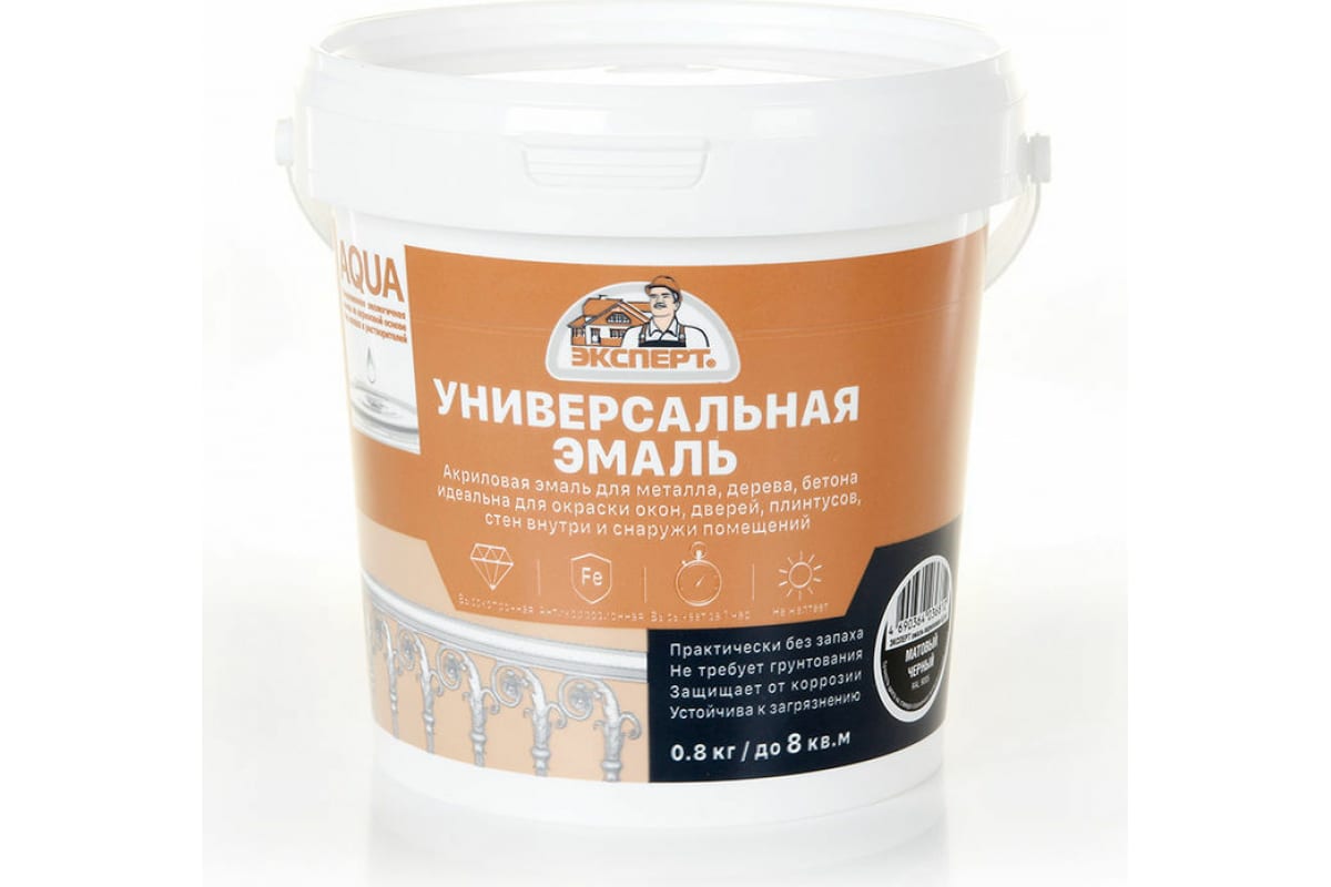 Эмаль универсальная акриловая глянцевая ЭКСПЕРТ белый 0,8 кг 29070 - универсальная экологичная акриловая эмаль для металлических, деревянных, бетонных и ранее окрашенных окон, дверей, плинтусов, стен внутри и снаружи помещений. Эмаль быстро сохнет, не пахнет.