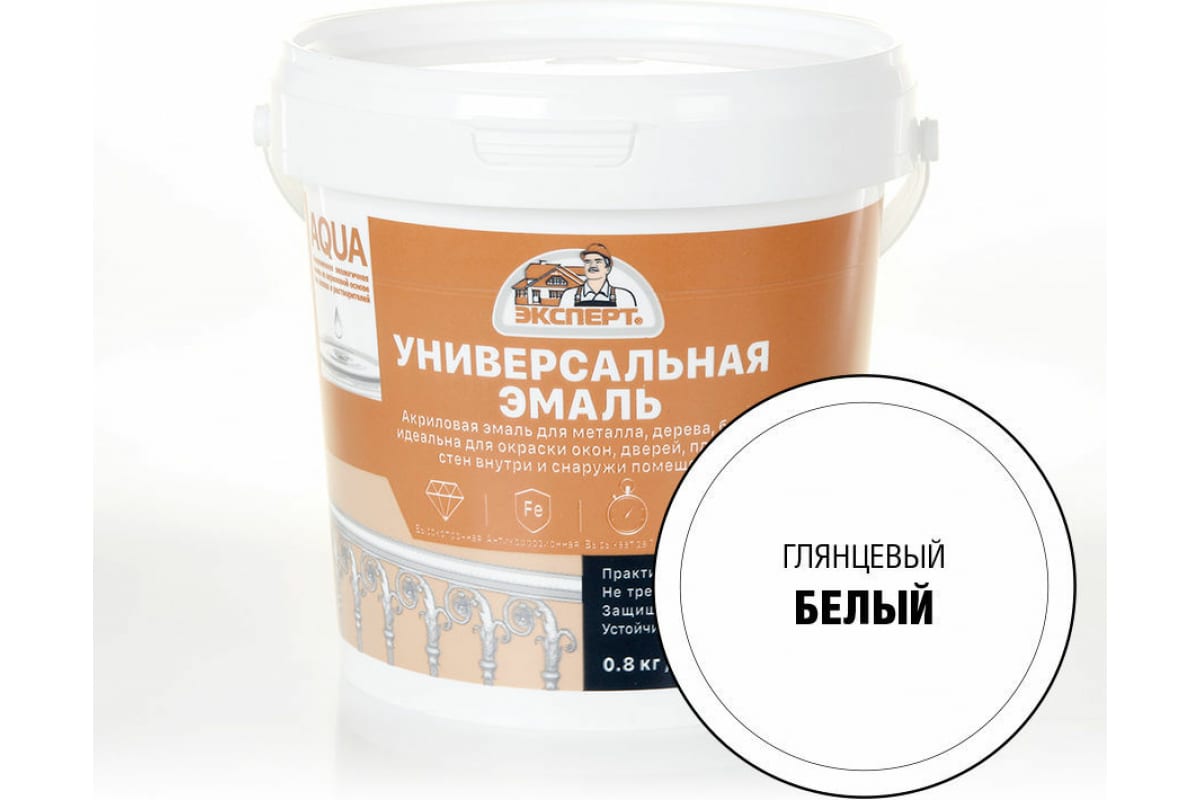 Эмаль универсальная акриловая глянцевая ЭКСПЕРТ белый 0,8 кг 29070