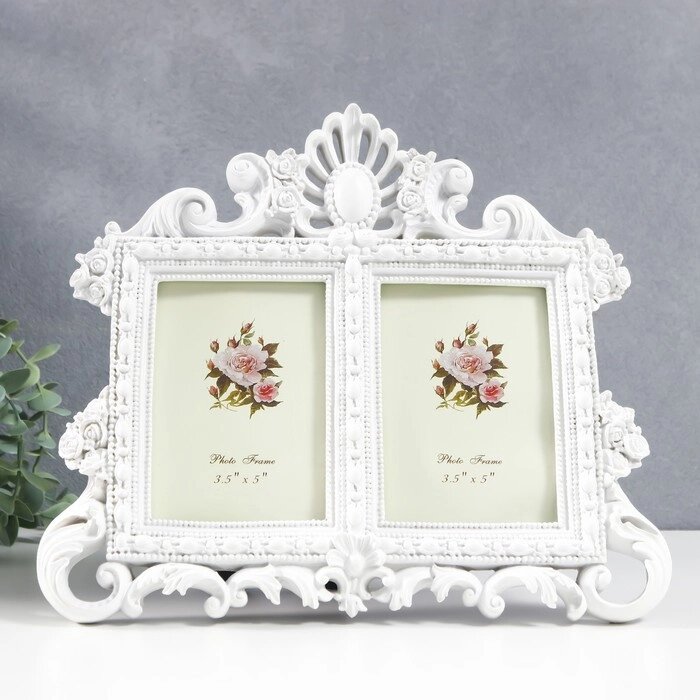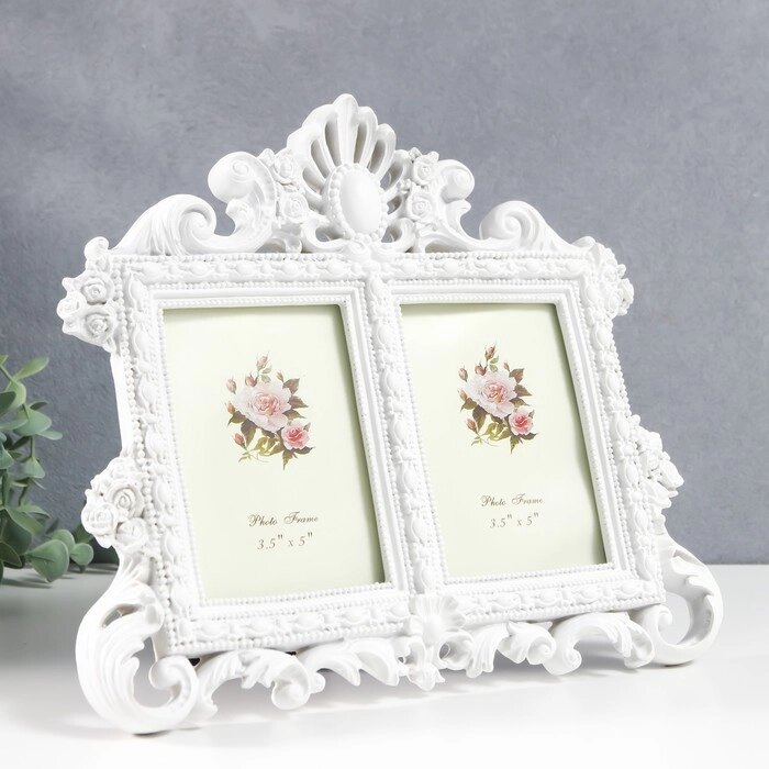 Фоторамка полистоун на 2 фото 9х13 см "Феникс" белая 25х29 см