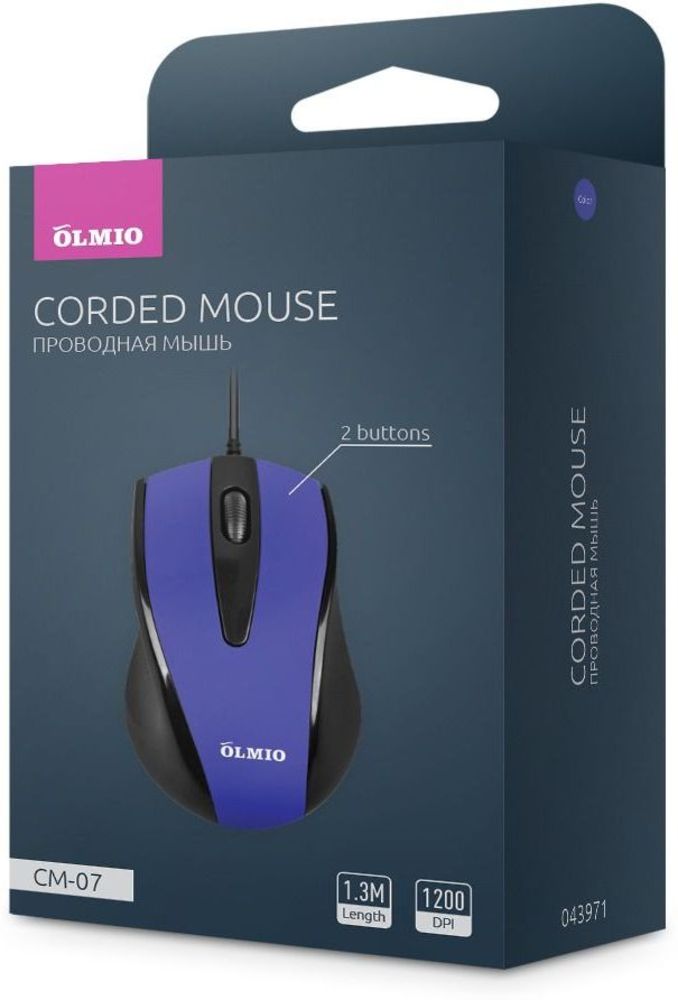Проводная, USB, оптическая, 1200 dpi, количество кнопок - 3, цвет: черный, синий, длина провода 1.3 м.