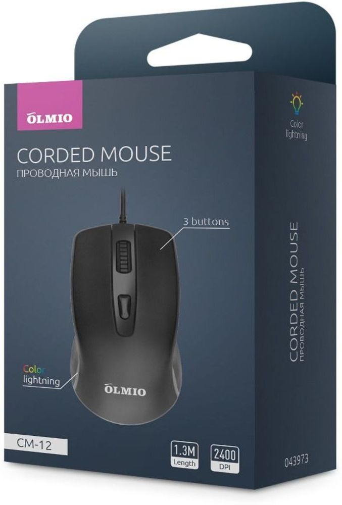 Проводная, USB, оптическая, 2400 dpi, количество кнопок - 4, цвет: черный, длина провода 1.3 м.