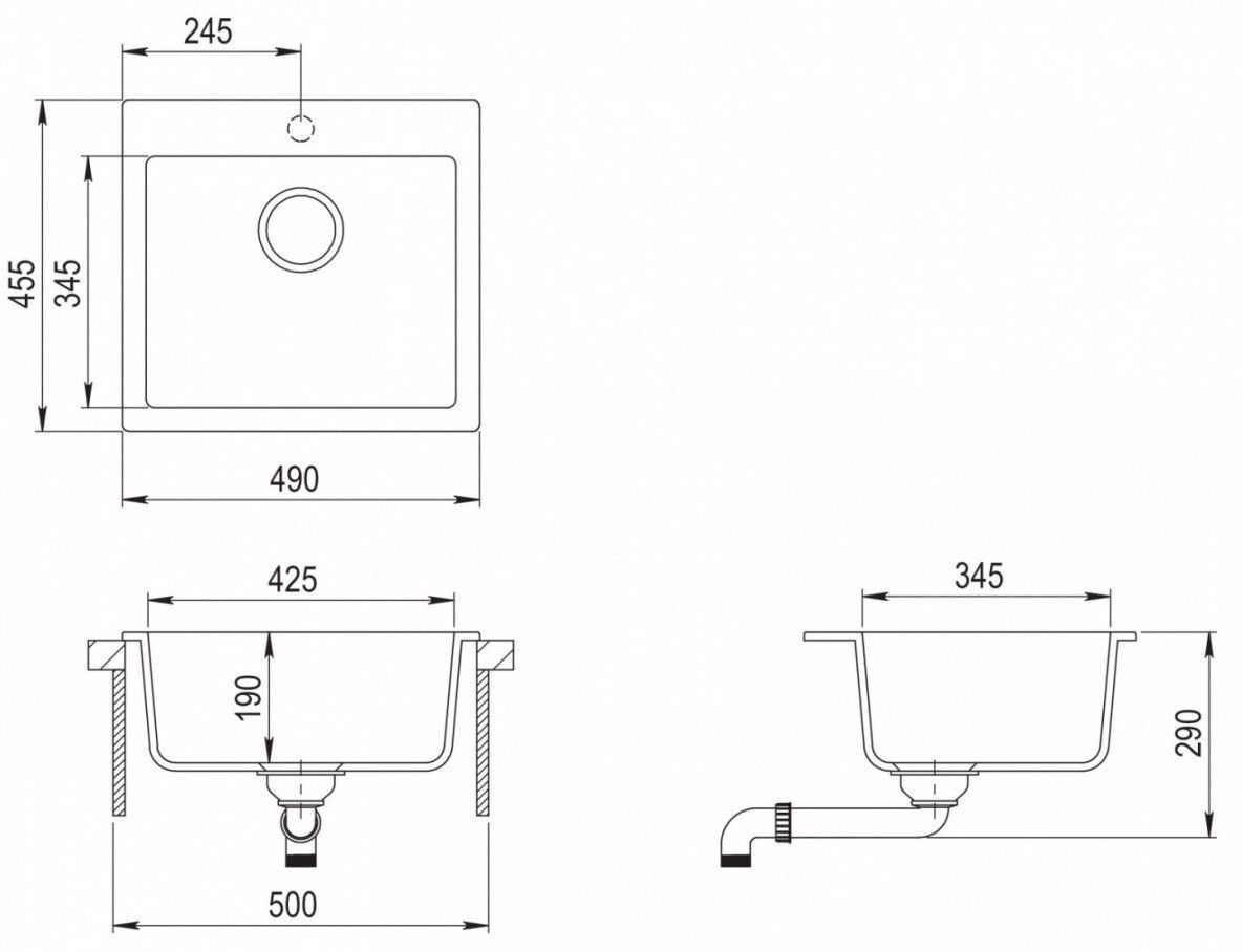 - Глубина 190 мм