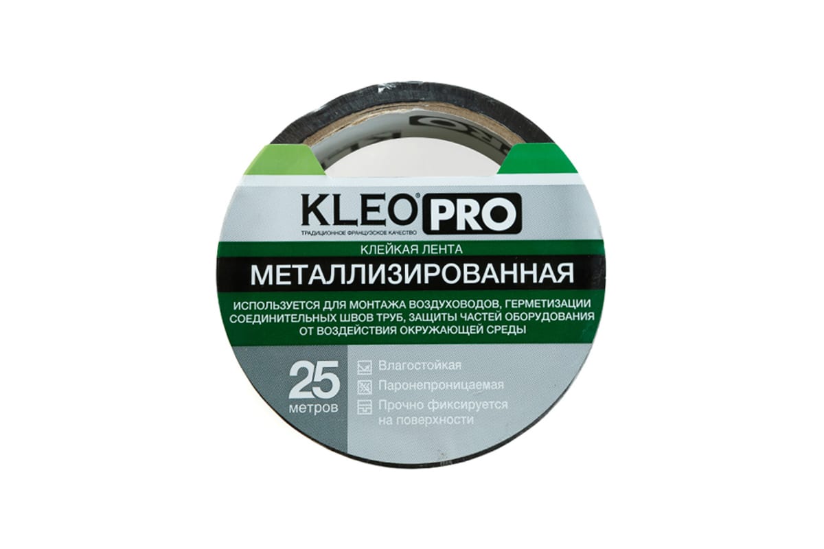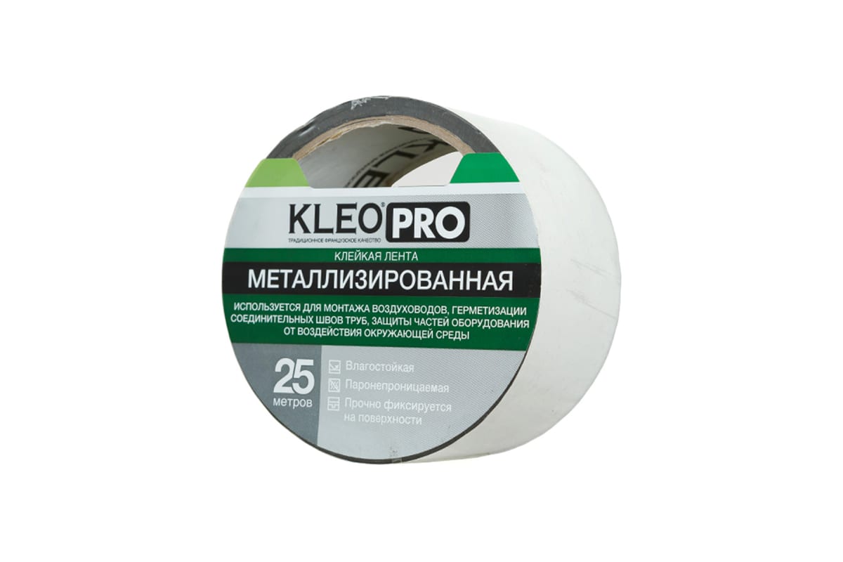 Металлизированная клейкая, клеящая лента KLEO 48мм х 25м PRO К2-СЛ-4222 используется для проклеивания стыков при монтаже отражающей изоляции, герметизации соединительных швов труб и воздуховодов.