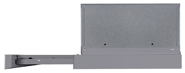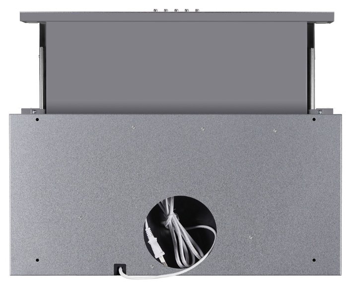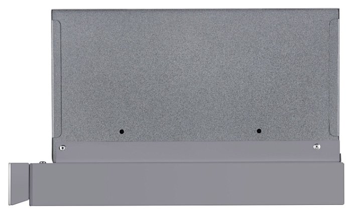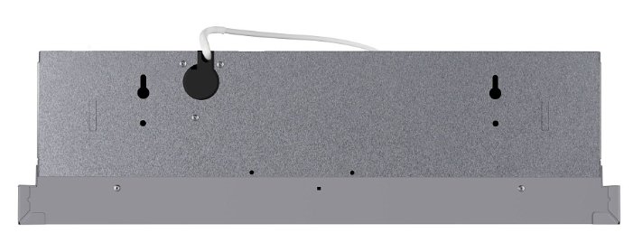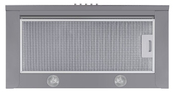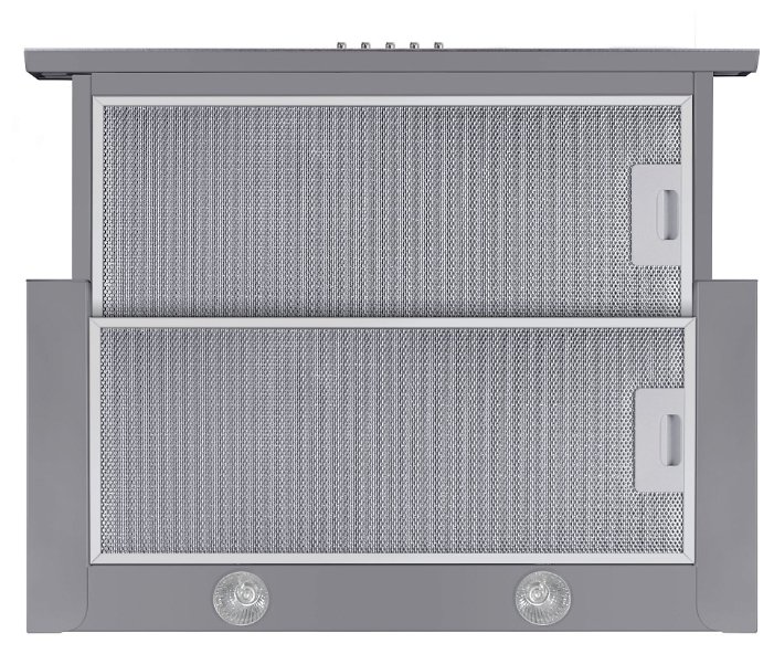 Корпус сделан из нержавеющей стали. Фасад выдвижной панели выполнен из матированного металла. Два многослойных жироулавливающих фильтра из алюминия легко вынимаются из вытяжки и полностью разбираются, что сильно упрощает их чистку.