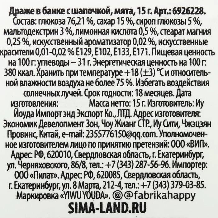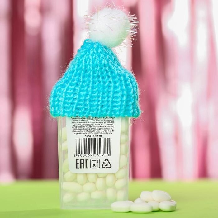 Драже в банке с шапочкой "Снежного года", мята, 15 г.