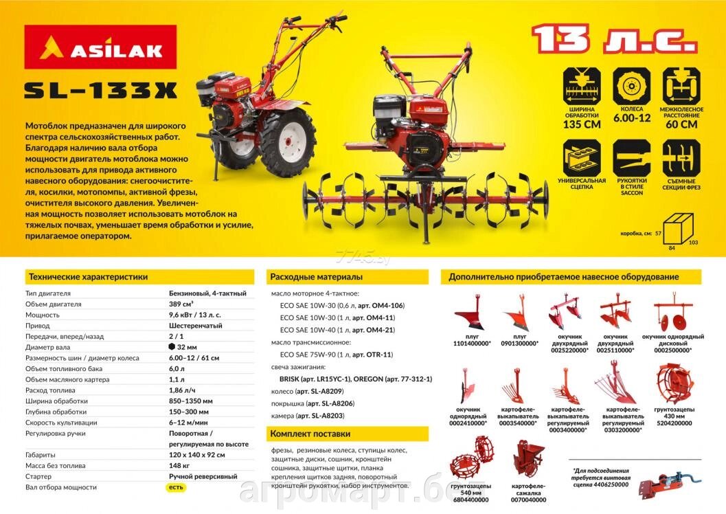 Мотоблок бензиновый ASILAK SL-133X (SL-133X)