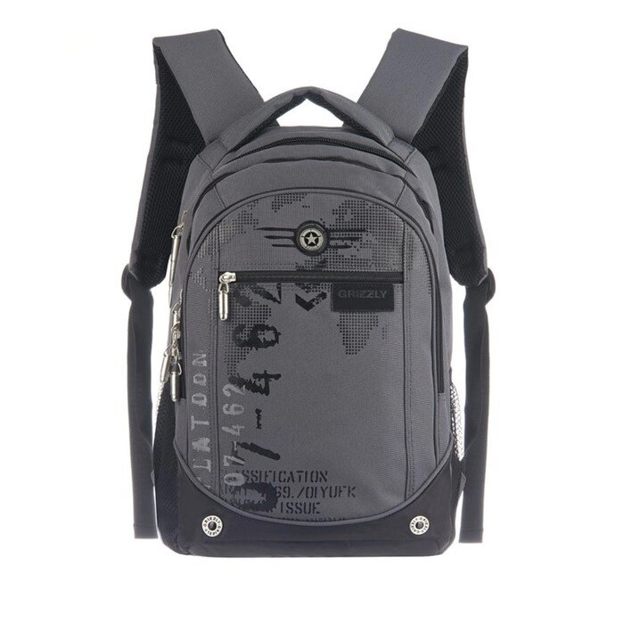 Рюкзак молодёжный с эргономичной спинкой Grizzly, 44 х 28 х 23, для мальчиков, серый
