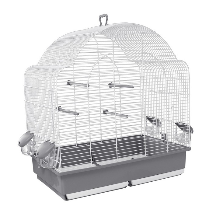 Клетка подходит для содержания любого типа птиц. Изготовлена в Испании, с использованием эпоксидной краски без свинца и пластика, полипропилена, не токсична. Съемный лоток для удобной очистки. Цвет: серый.