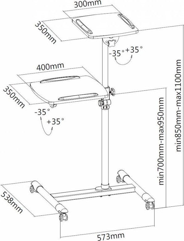 • Дополнительная информация Материал: Сталь / Дерево. Регулируемая высота поверхности: 700-950 / 850-1100 мм. Вес: 10 кг.