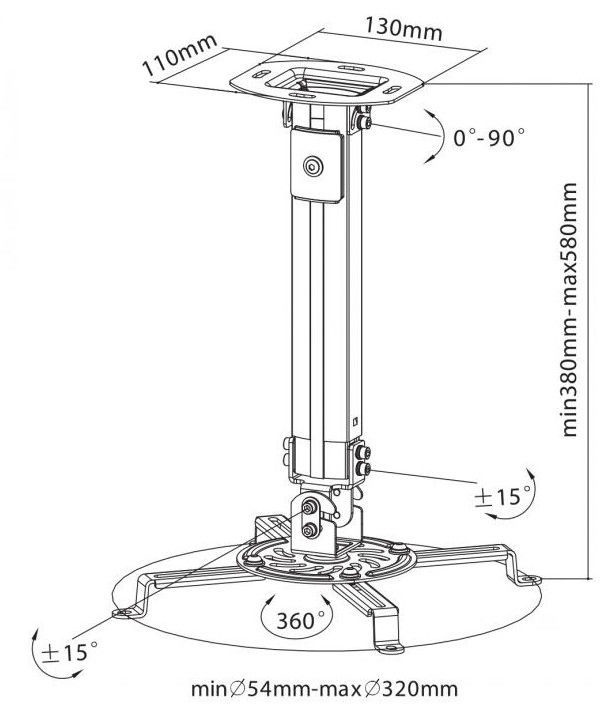 - Дополнительная информация Установка: на потолок. Регулировка высоты: 380 - 580 мм. Вращение: 360°