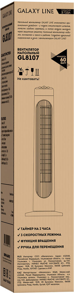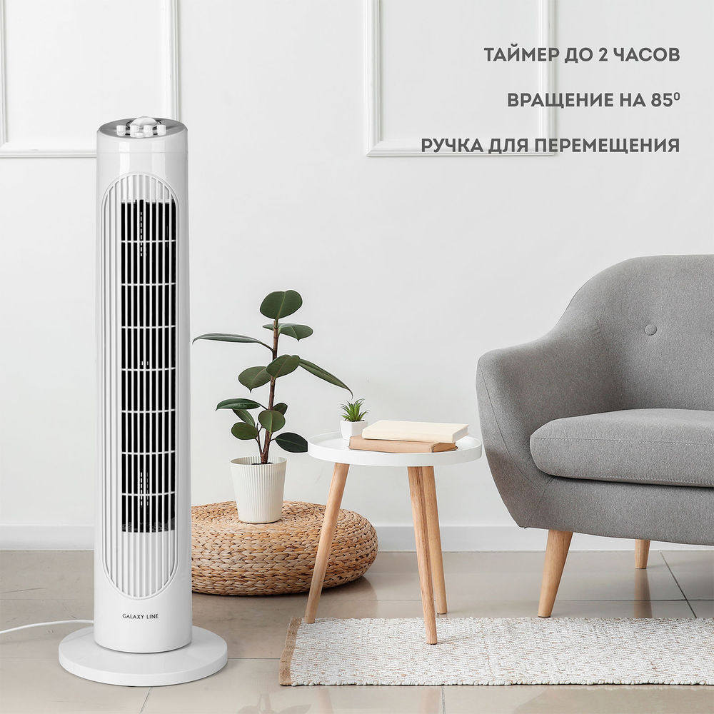 Напольный, радиальный, мощность 60 Вт, количество скоростей 3, управление механическое, вращающийся корпус, таймер.