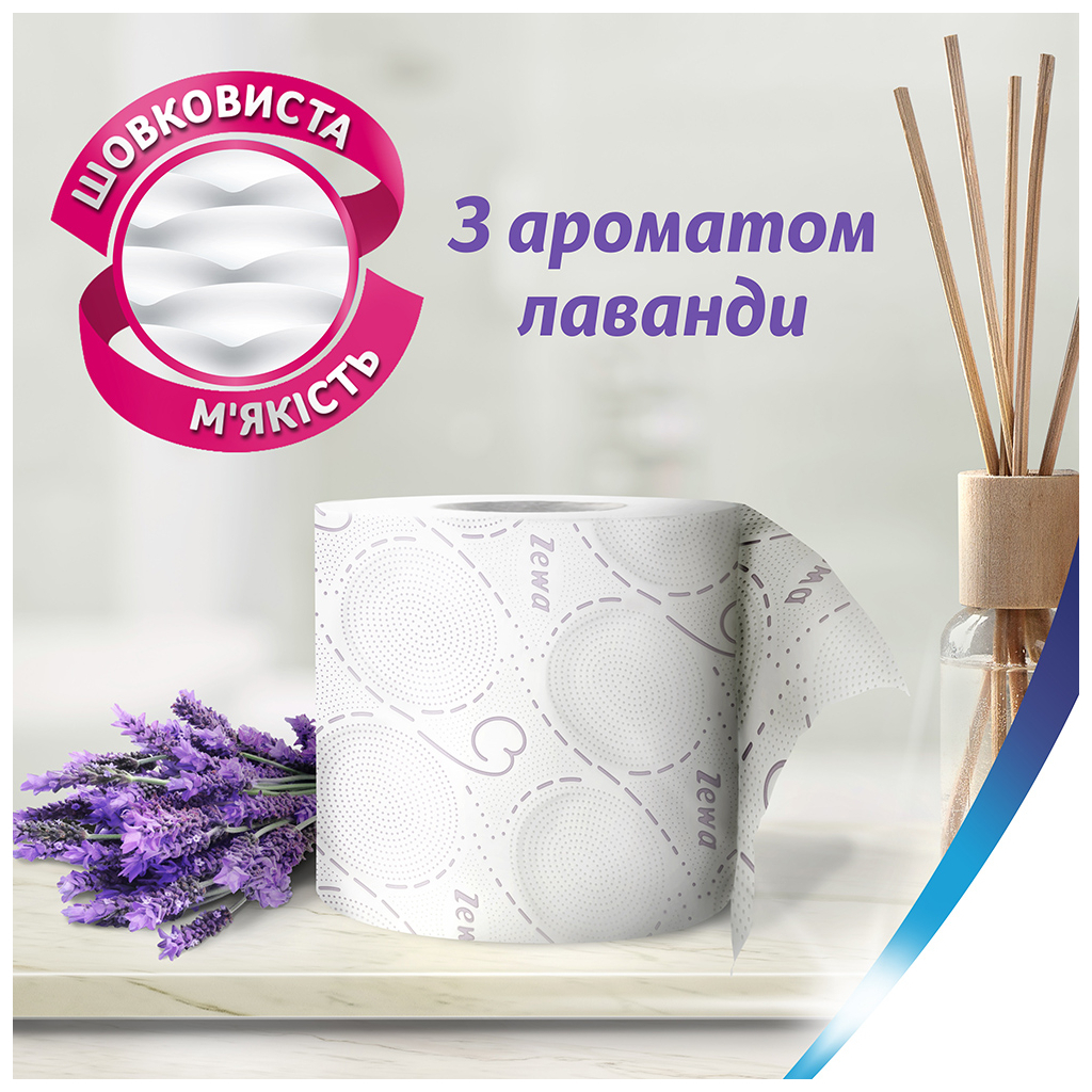 Тришаровий туалетний папір Zewa Deluxe Lavanda — м'який і міцний, якісний туалетний папір із легким ароматом лаванди.