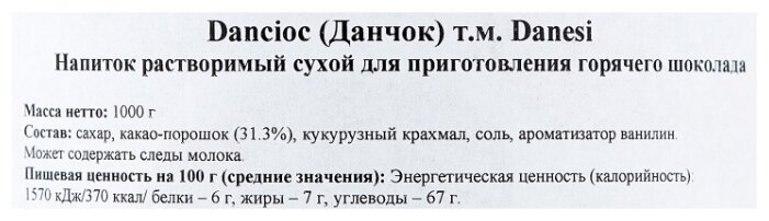 • Состав сахар, какао-порошок (31,3%), кукурузный крахмал, соль, ароматизатор ванилин