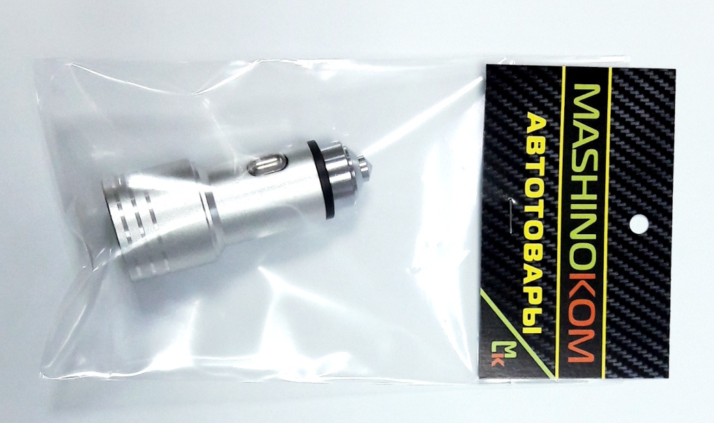 Адаптер в прикуриватель "Серебряный металл" (USB 2 разъема)