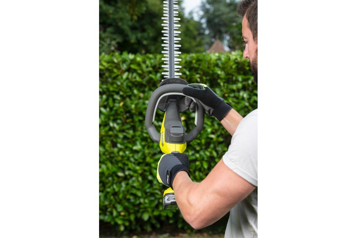 Кусторез Ryobi 18В RY18HT55A-140 5133005499 используется для ухода за садовыми изгородями.