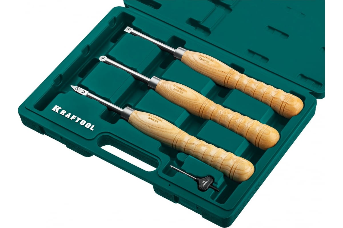Набор ручных резцов по дереву KRAFTOOL Precision-3 3 шт 18369 - профессиональные высокоточные токарные резцы с твердосплавными рабочими гранями. Предназначены для работ по дереву.