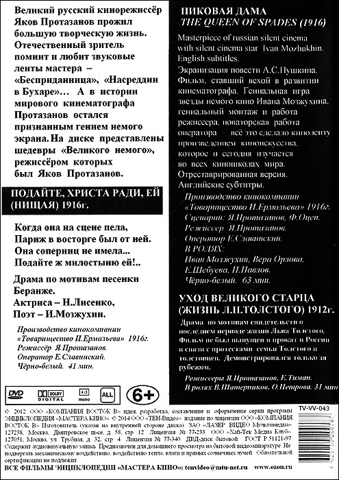 Шедевры немого кино Якова Протазанова: Пиковая дама / Подайте Христа ради, ей / Уход великого старца (3 в 1)