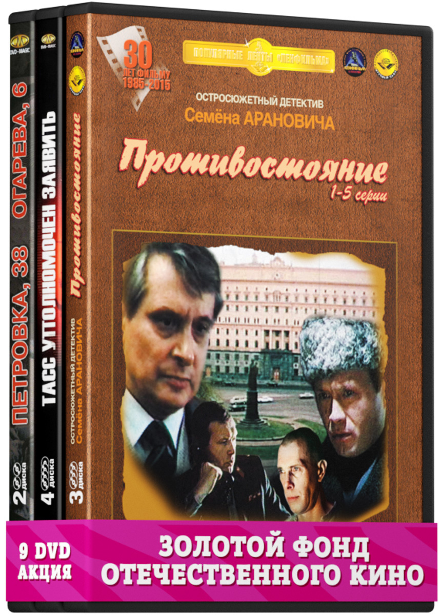 Экранизация. Семёнов Ю.: Противостояние. 1-5 серии 3DVD / Петровка, 38/Огарёва, 6 2DVD / ТАСС уполномочен заявить.1-1 серии 4DVD (9 DVD)