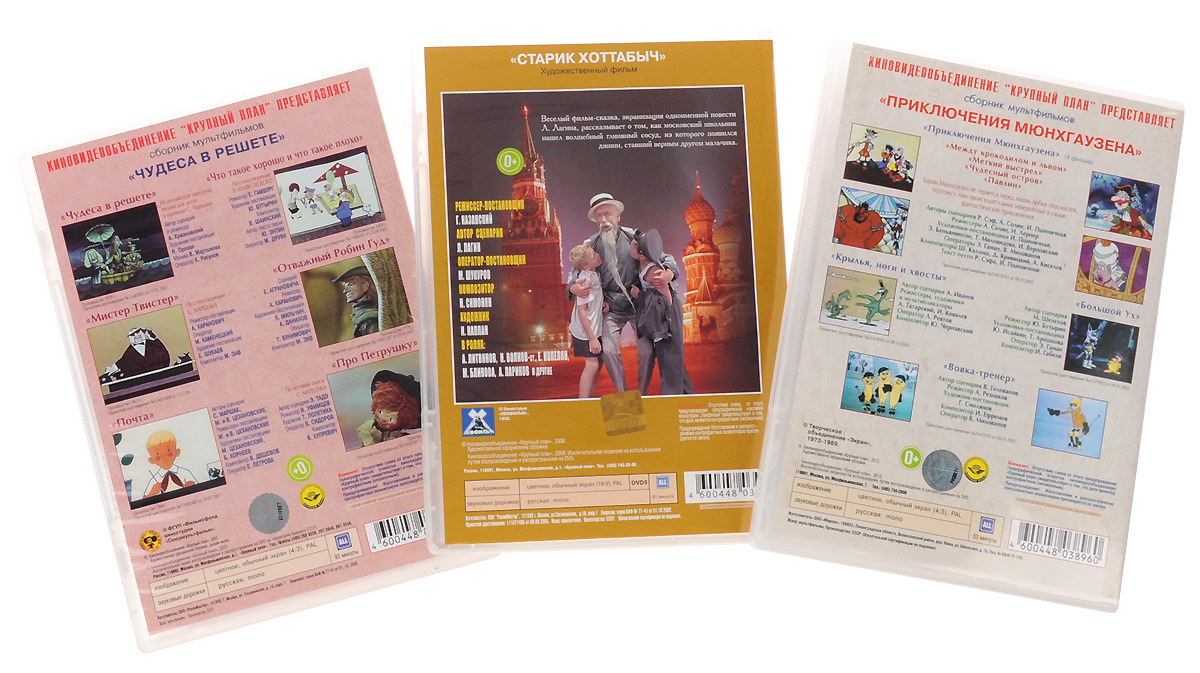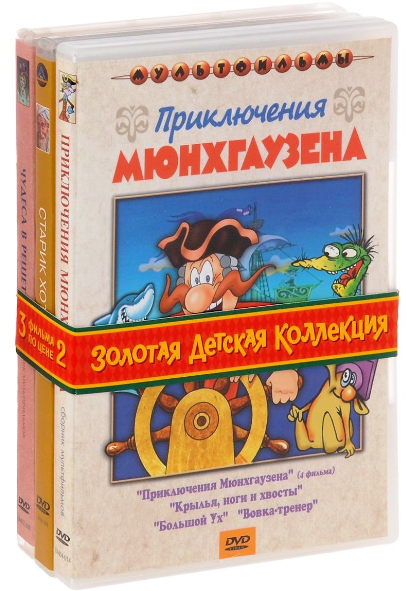 Золотая детская коллекция: Приключения Мюнхгаузена (сборник мультфильмов) / Чудеса в решете (сборник мультфильмов) / Старик Хоттабыч (фильм-сказка) (3 DVD)