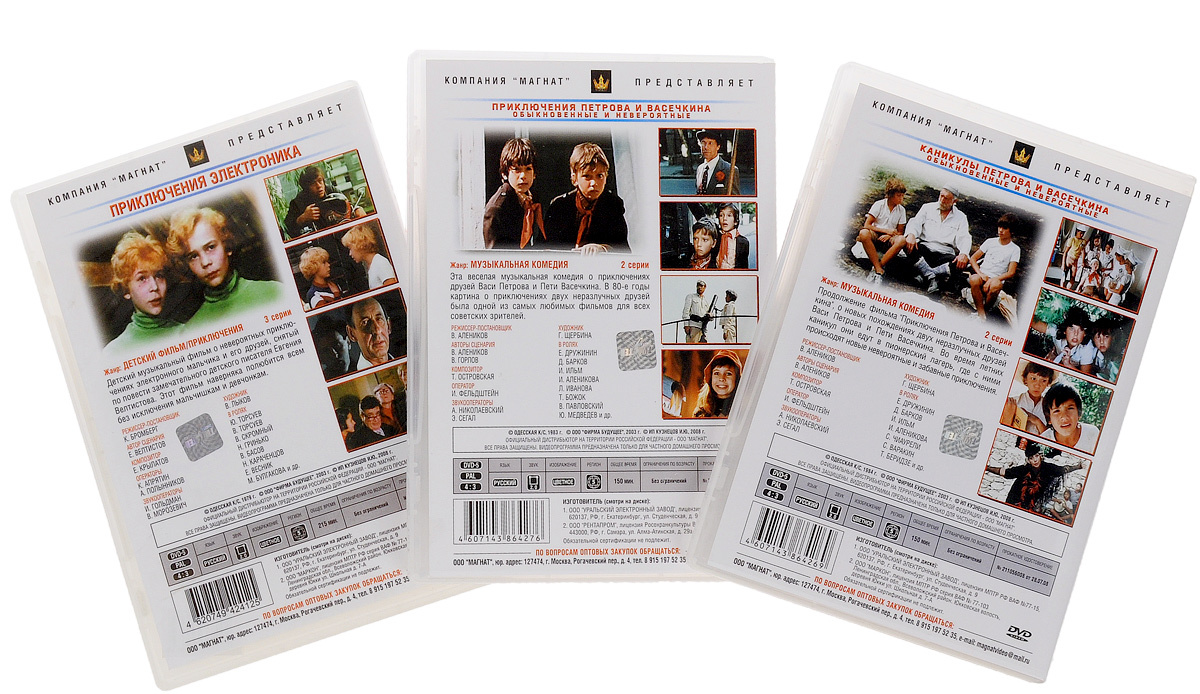 По дорогам детства: Приключения Петрова и Васечкина. Фильм 1. 1-2 серии / Каникулы Петрова и Васечкина. Фильм 2. 1-2 серии / Приключения Электроника. 1-3 серии (3 DVD)