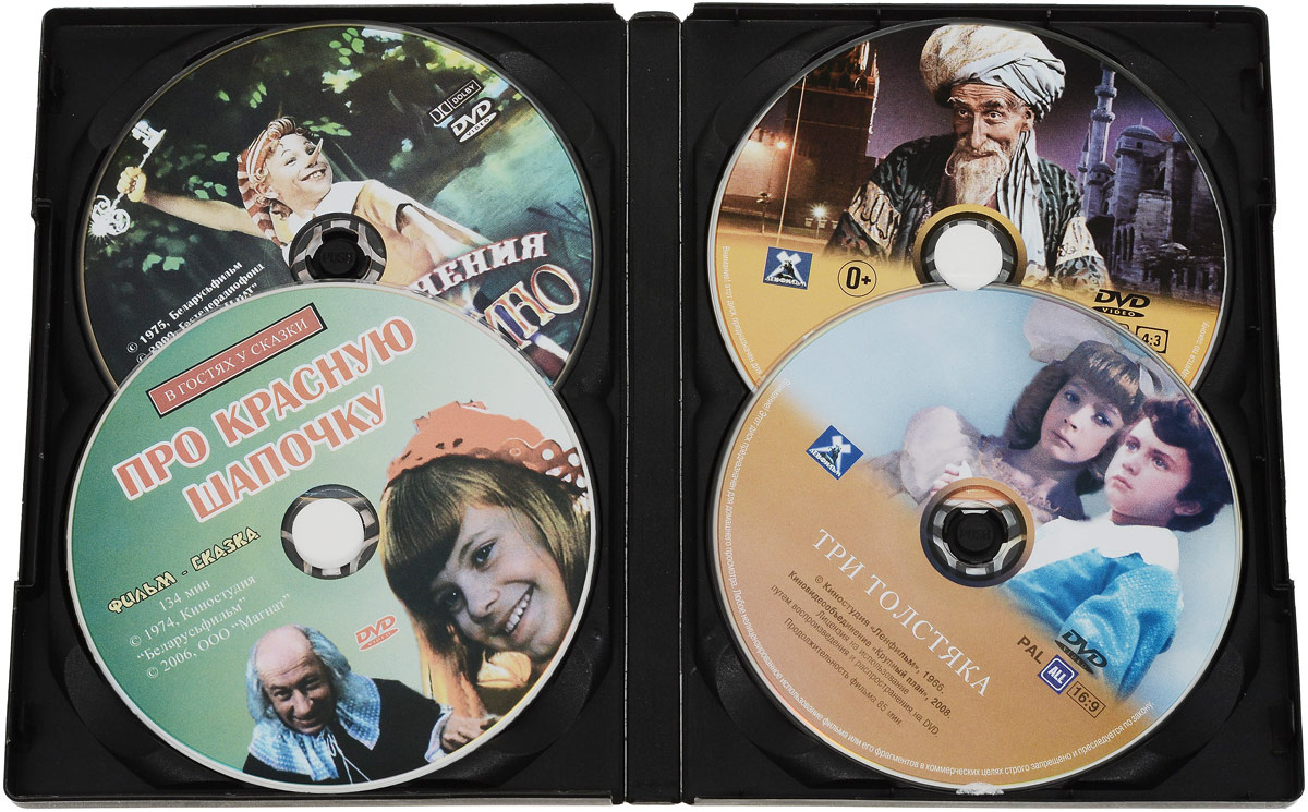 4в1 Сказка за сказкой: Приключения Буратино. 01-02 серии / Про Красную Шапочку. 01-02 серии / Старик Хоттабыч / Три Толсятка (4 DVD)